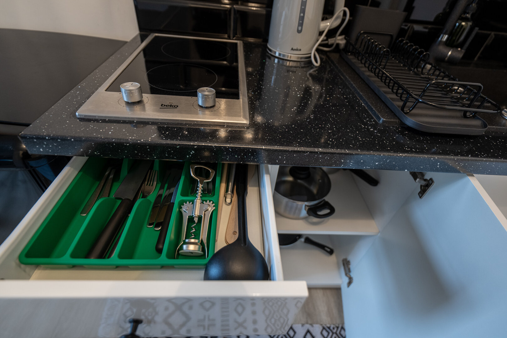Część wyposażenia, w tym odkurzacz i mop, znajdują się w przedsionku i jest współdzielona z pozostałymi lokalami. Po zakończeniu korzystania prosimy o odstawienie urządzeń na miejsce.